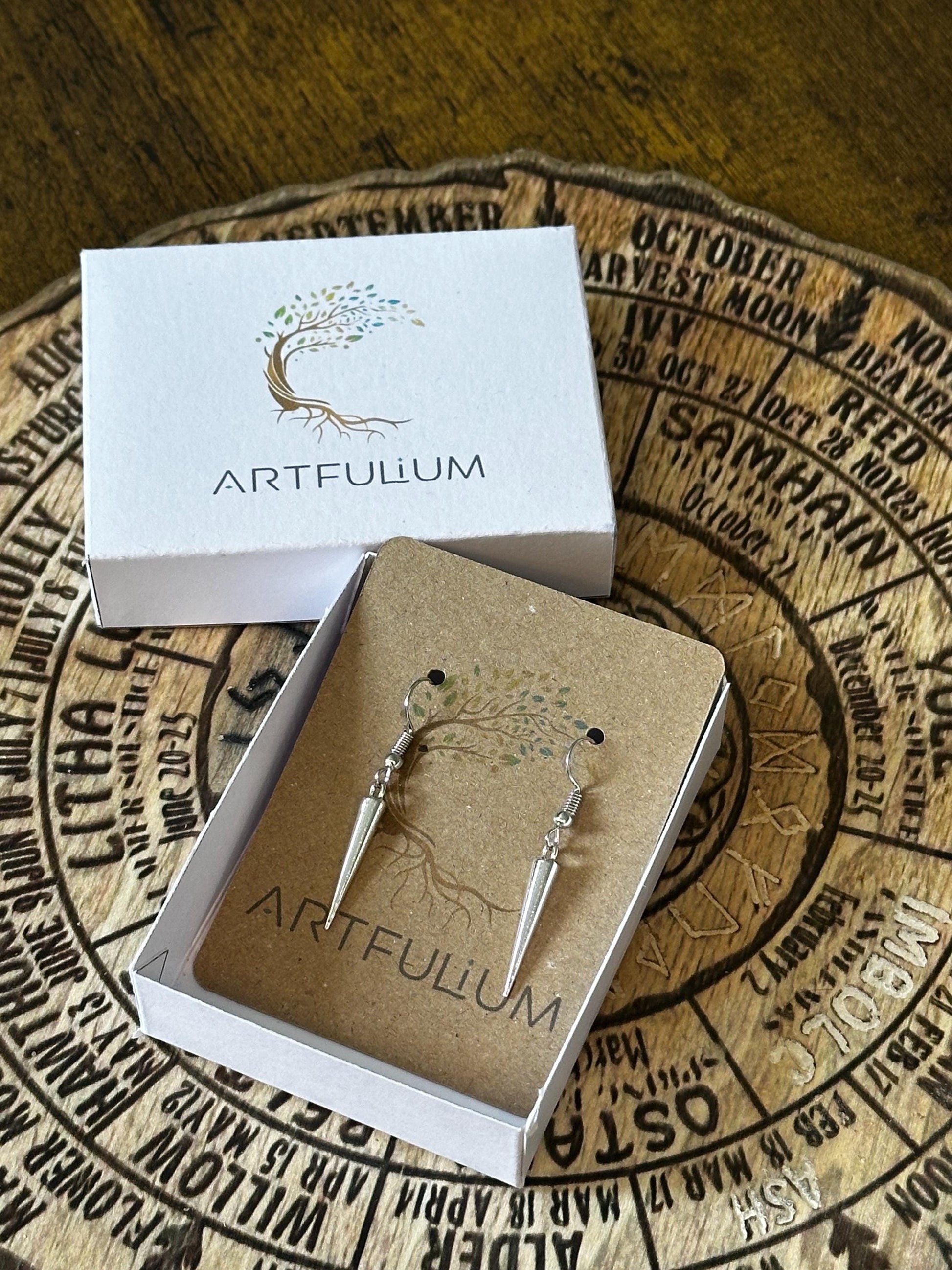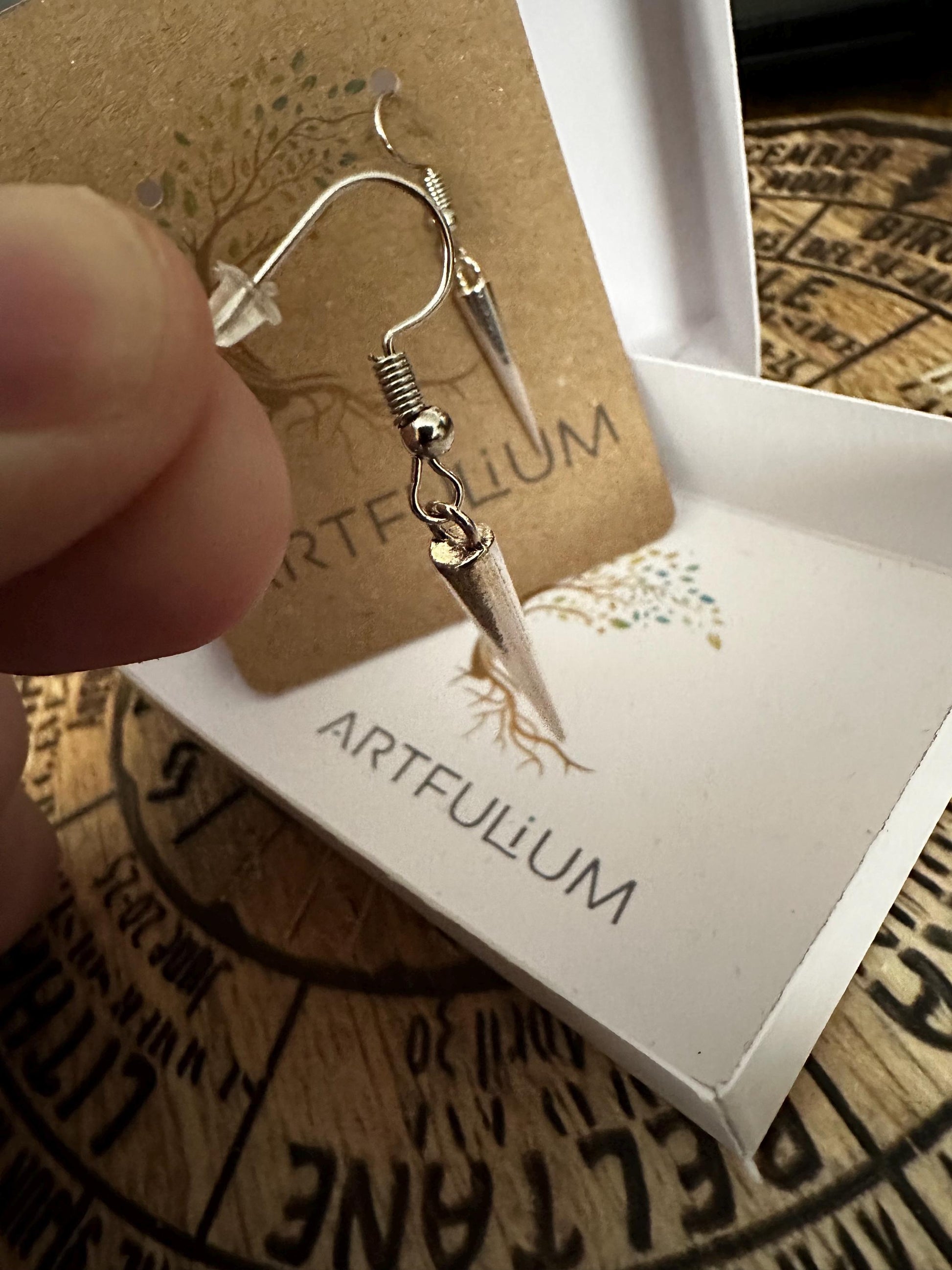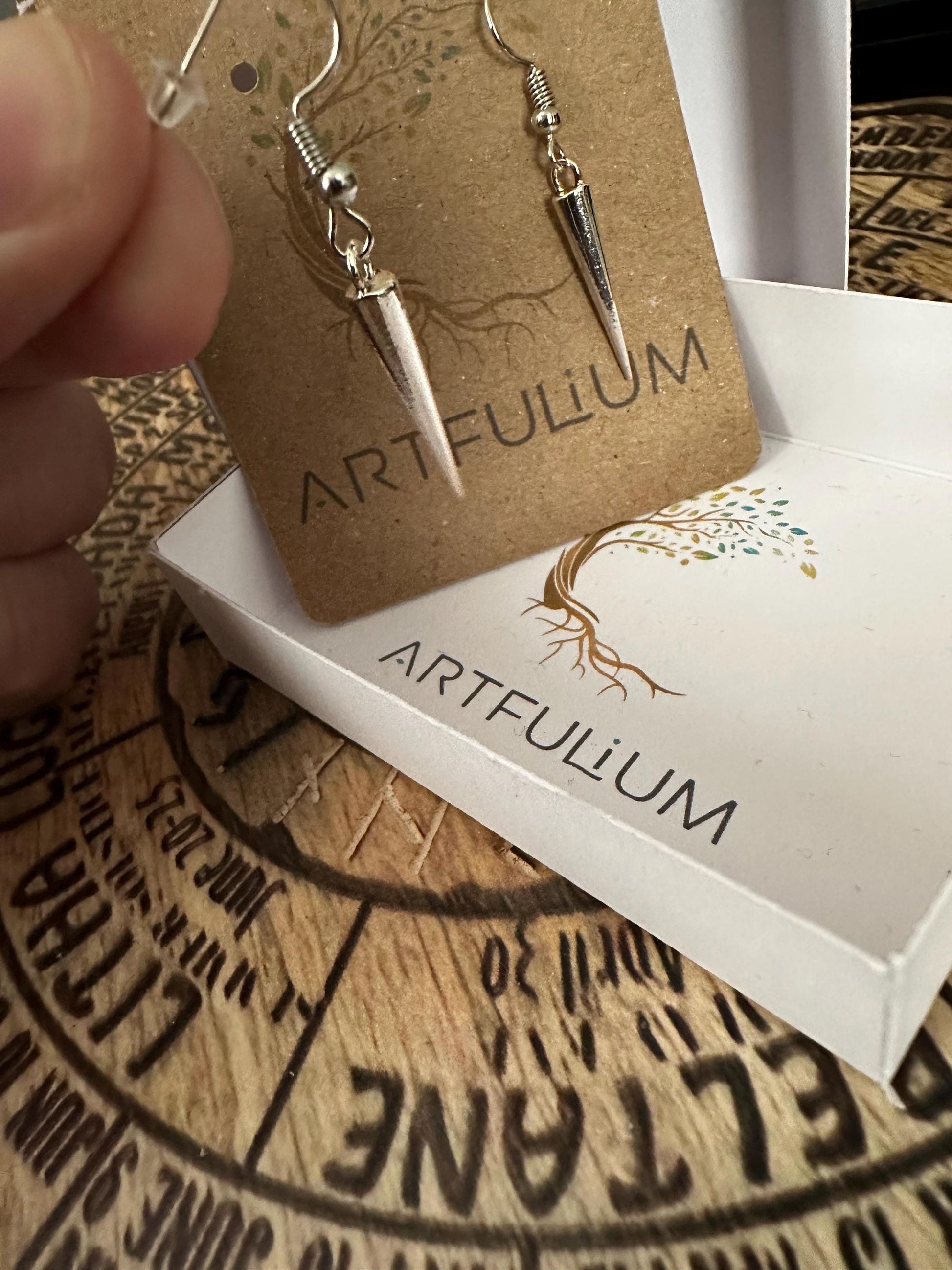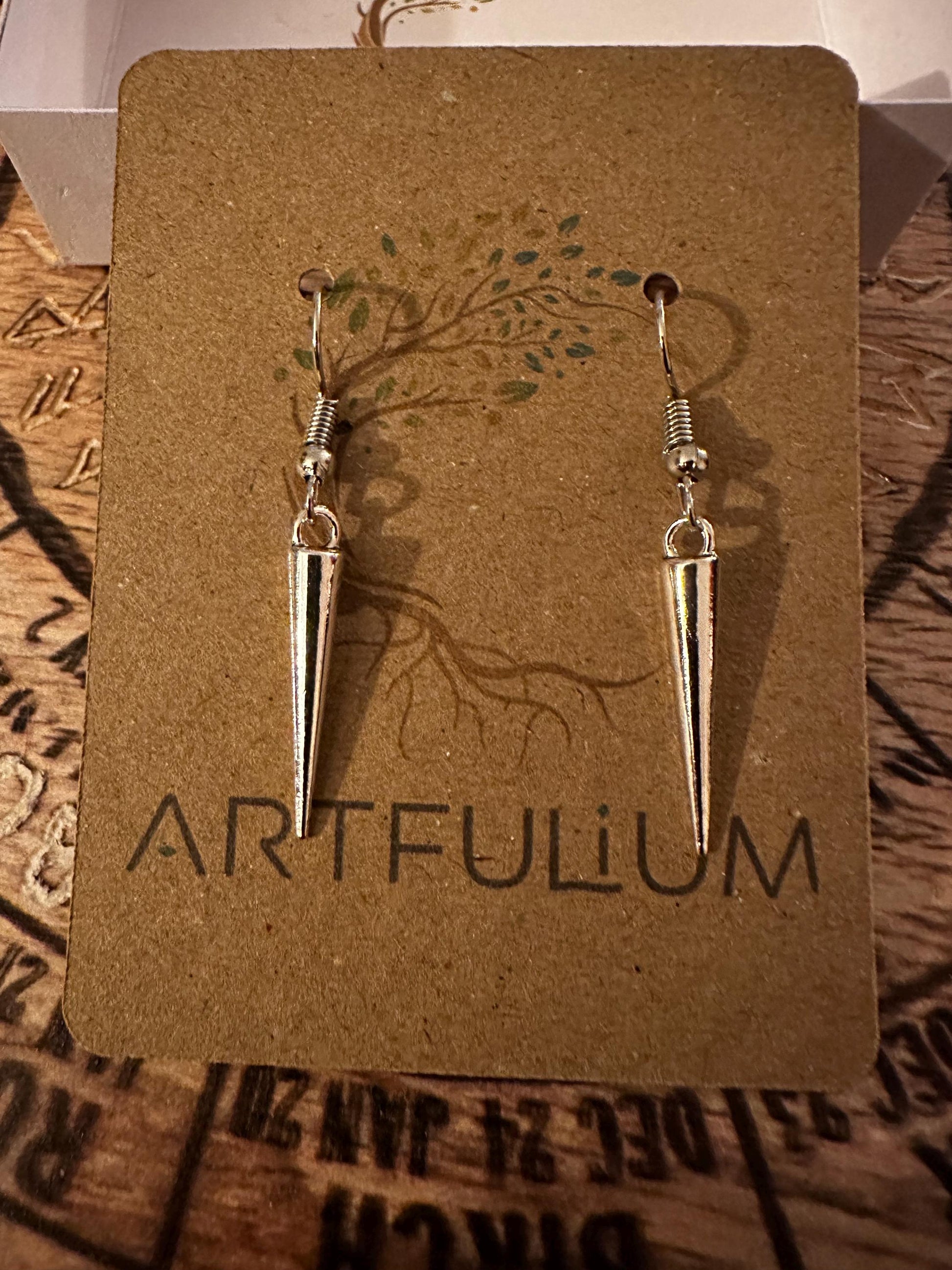 - Materials: Zinc alloy spike with antique metallic finish + hypoallergenic stainless steel ear wires.