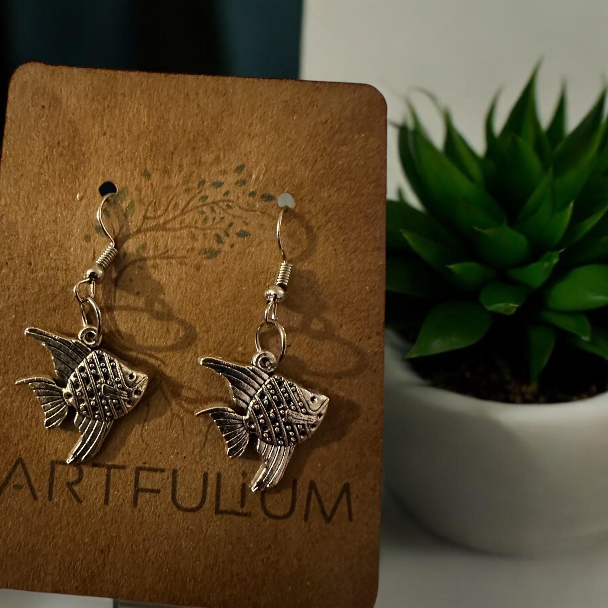Glide into graceful style with our handcrafted Angelfish Dangle Earrings, inspired by the serene beauty of tropical waters. Perfect for ocean admirers, aquarium enthusiasts, and anyone captivated by the wonder of marine life, these lightweight earrings offer timeless elegance for any occasion