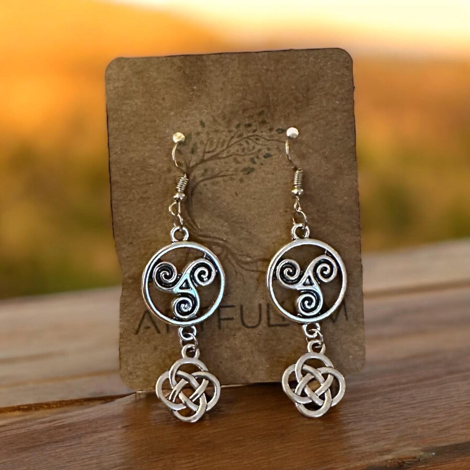 Handmade Triskelion Knot Earrings – Celtic Dangle Jewelry for Sensitive Ears – 1.5” Drop