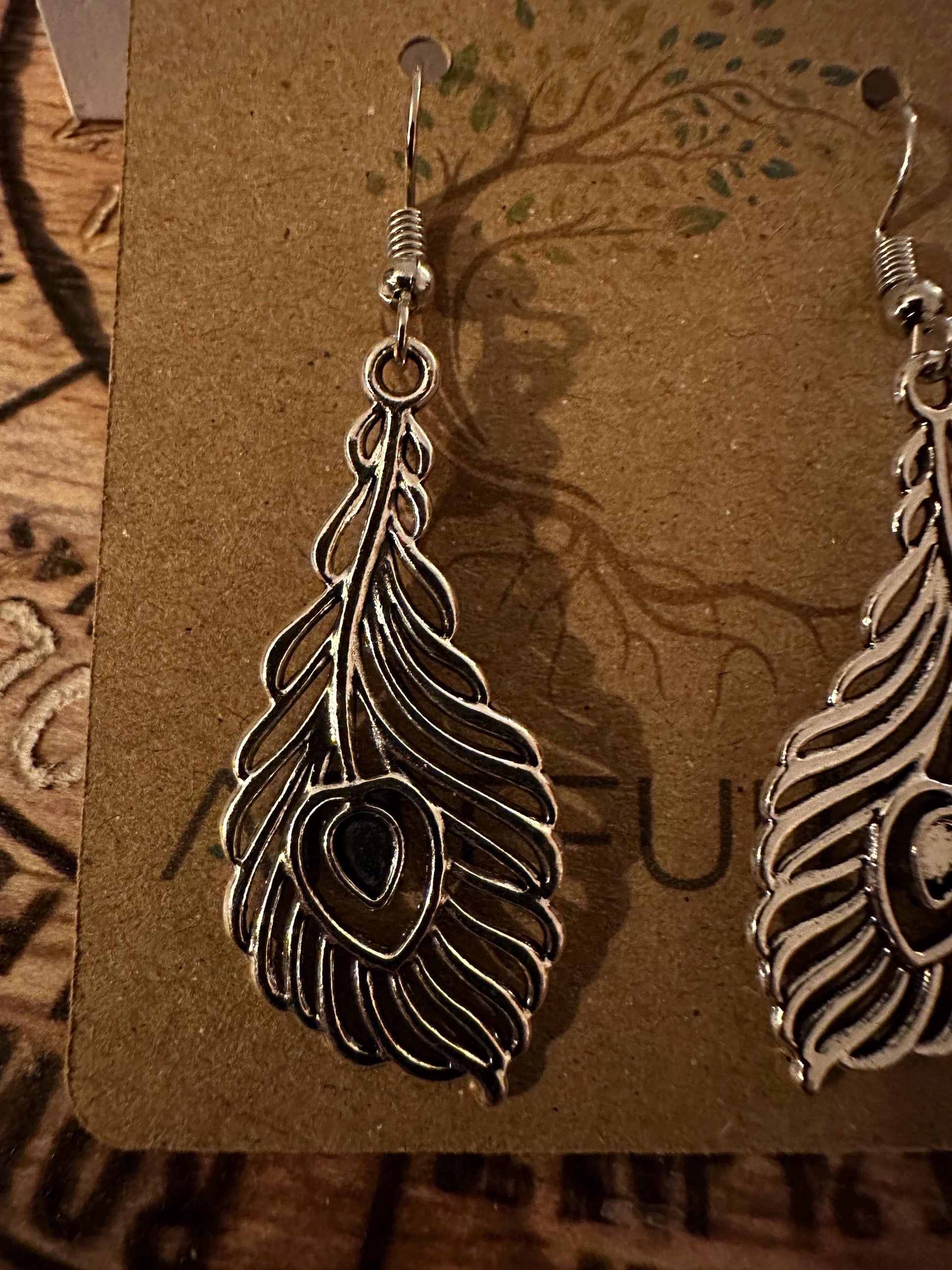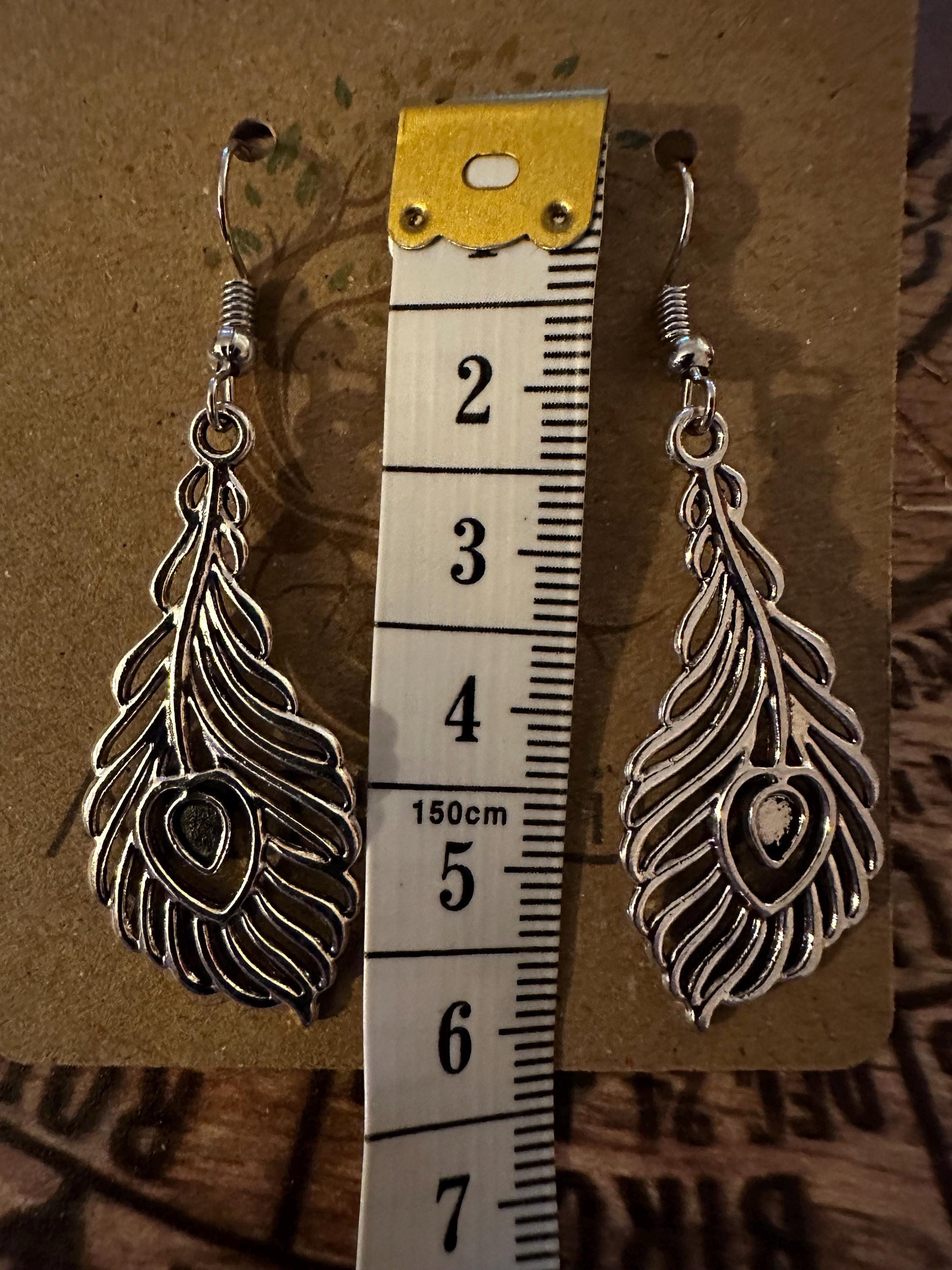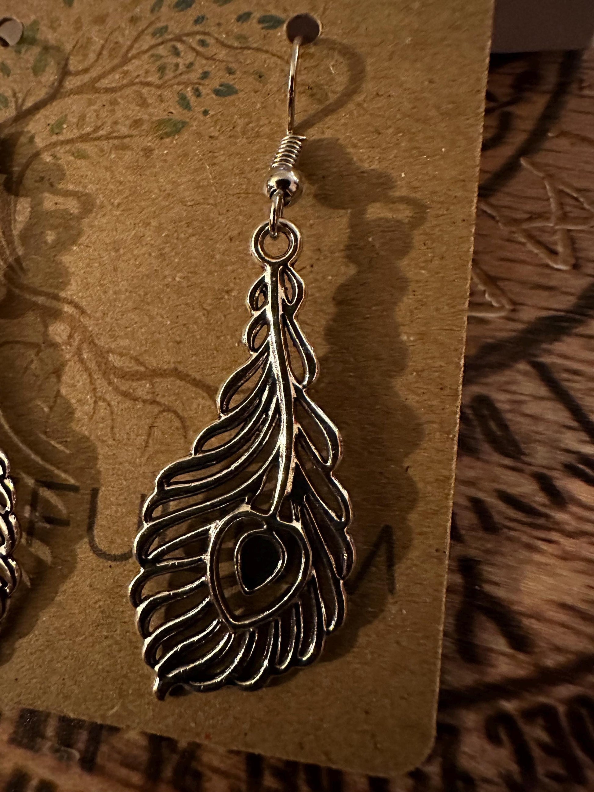 - Materials: Zinc alloy feather (antique metallic finish) + hypoallergenic stainless steel hooks.