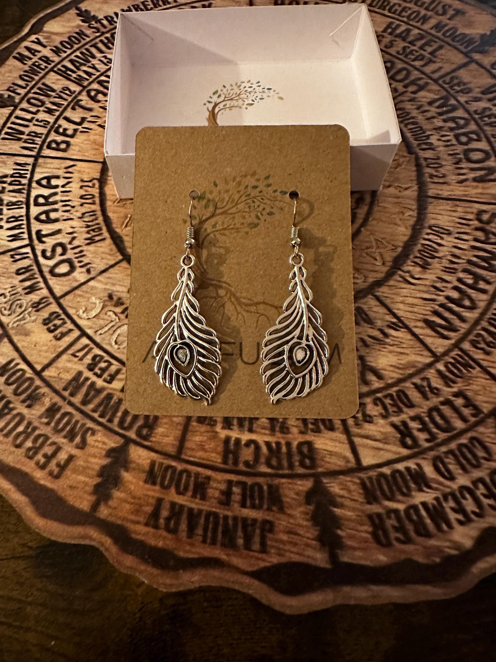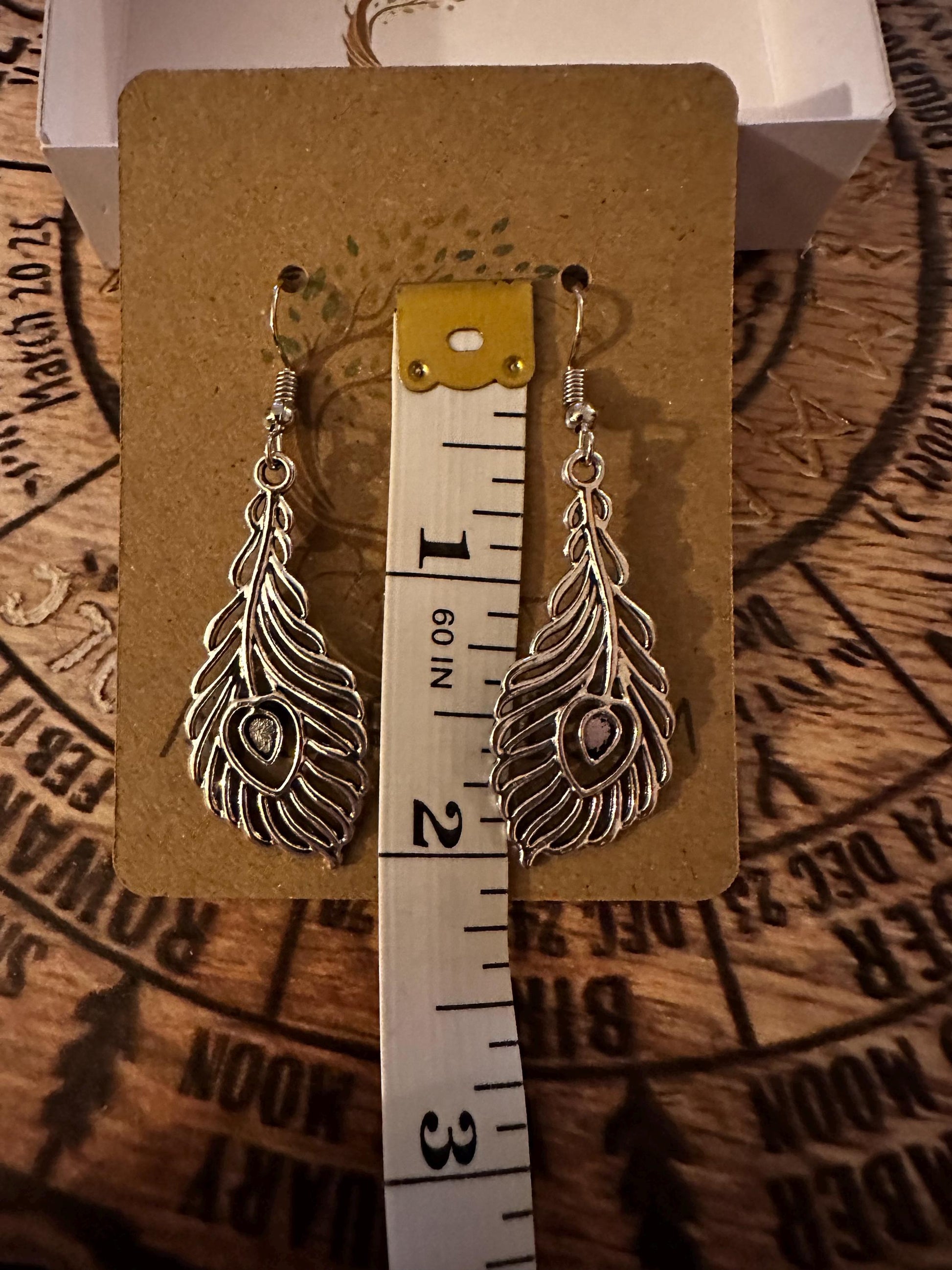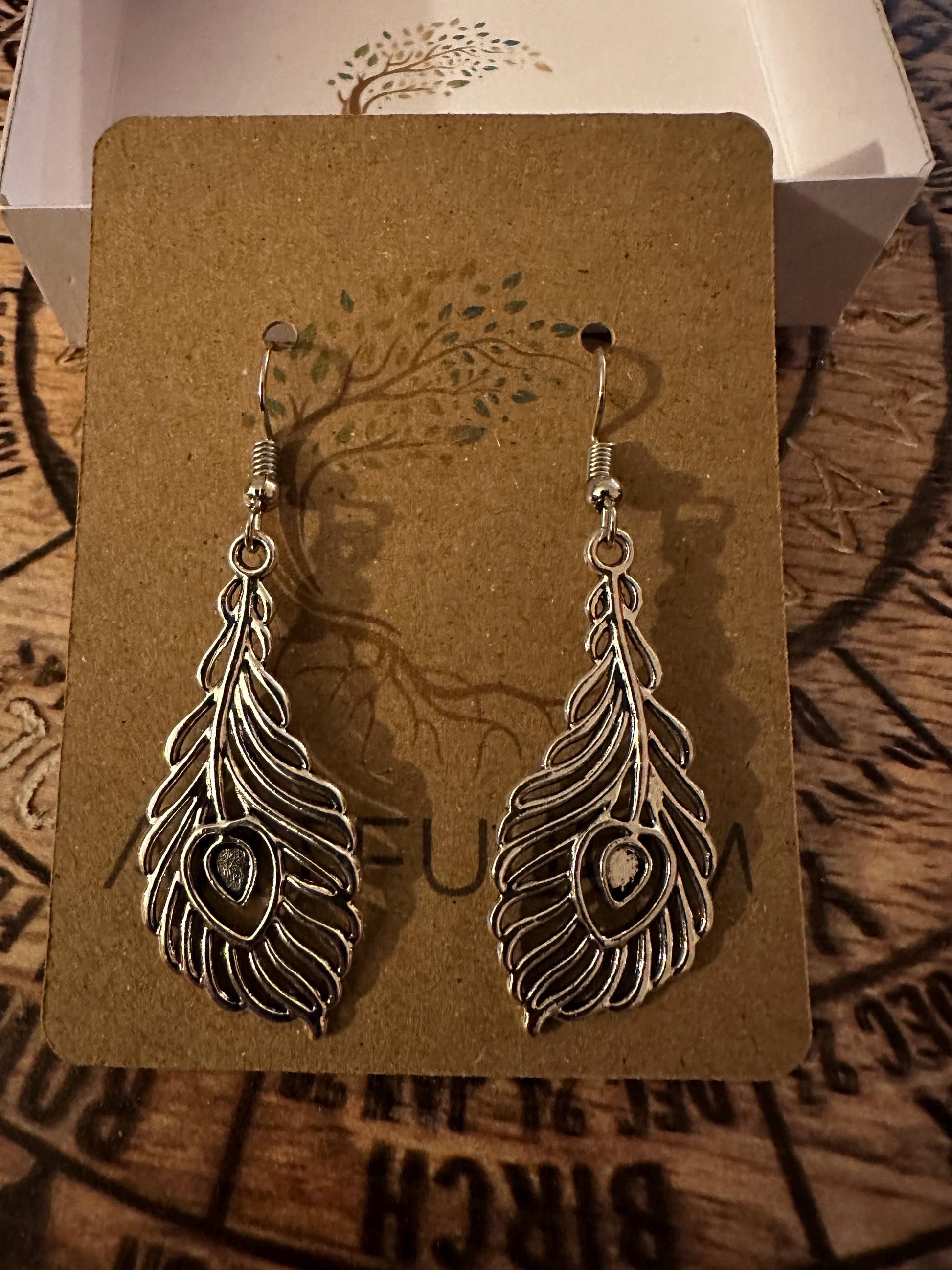 - Materials: Zinc alloy feather (antique metallic finish) + hypoallergenic stainless steel hooks.