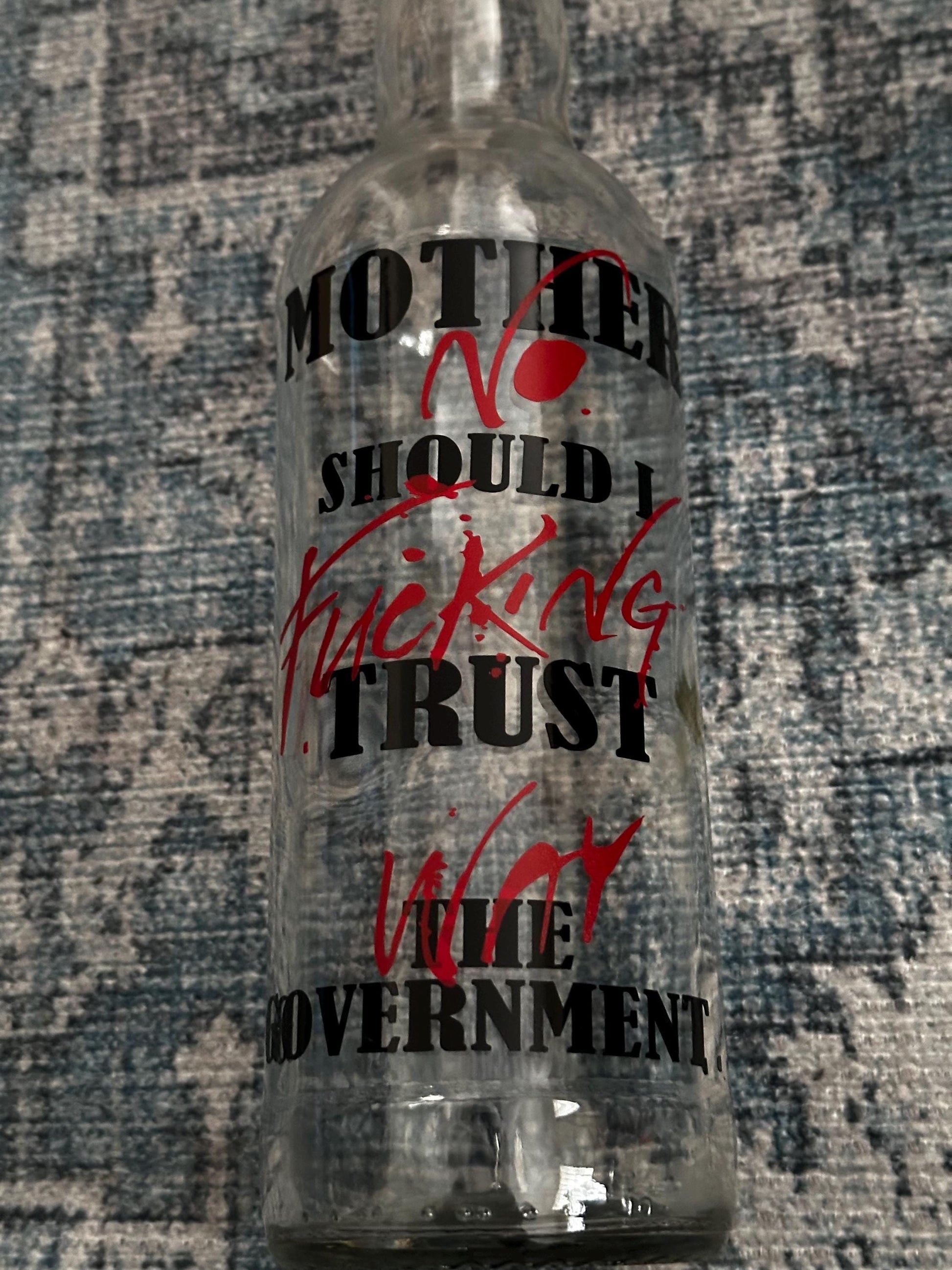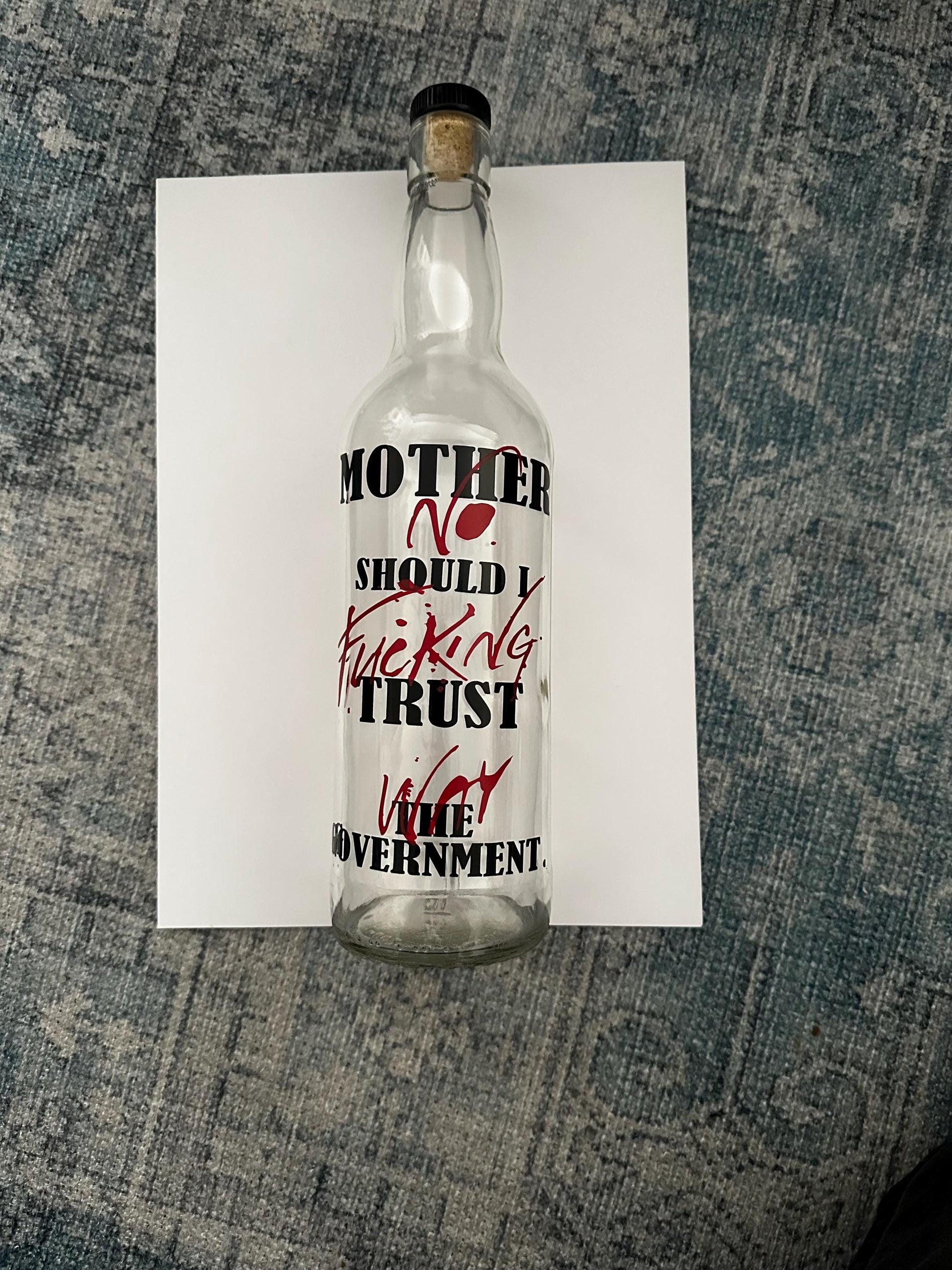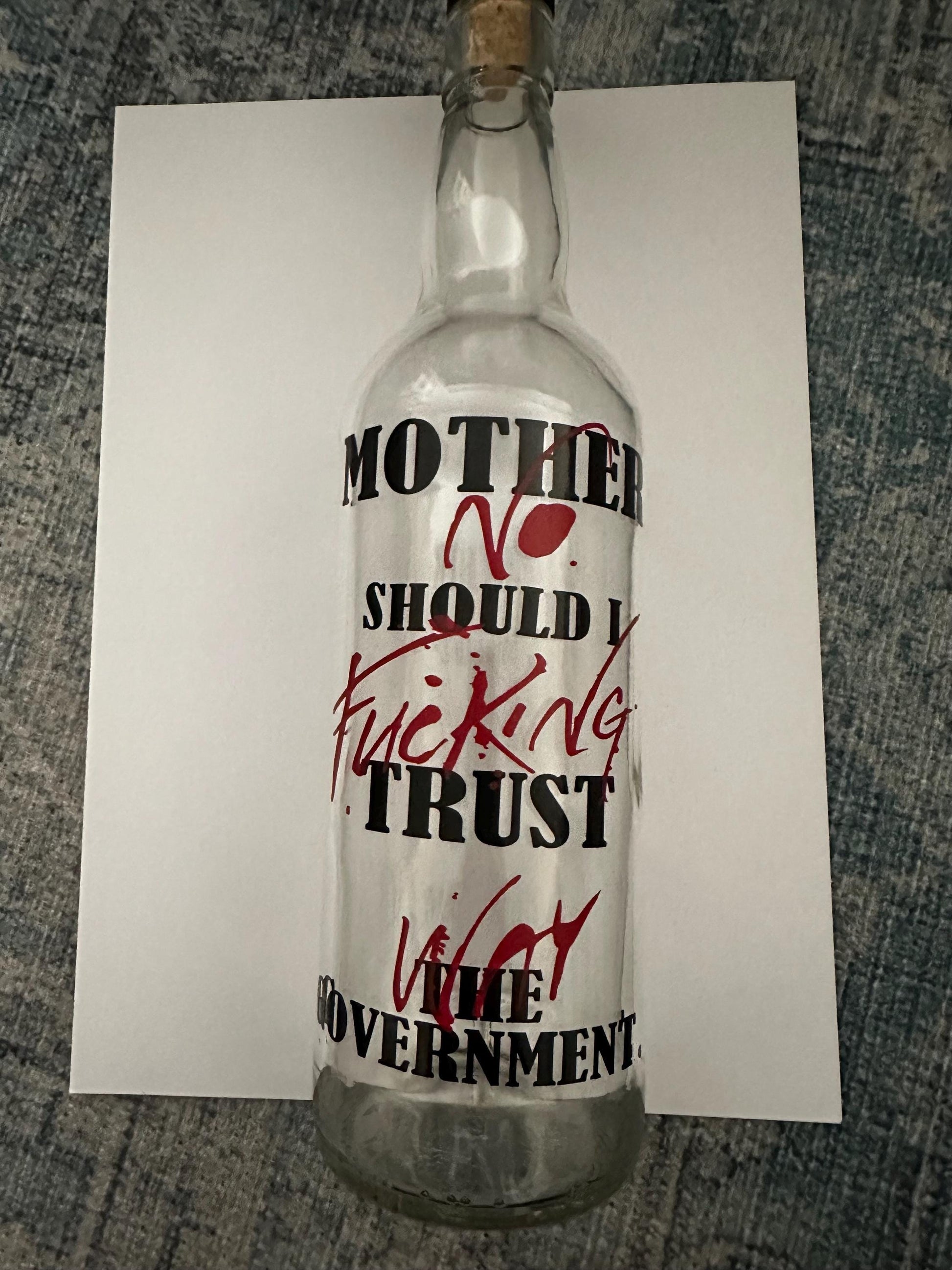 Pink Floyd 'Mother' Lyrics Glass Bottle | Handmade Vinyl Art Decor | Explicit Song Quote Gift for Fans | The Wall Inspired