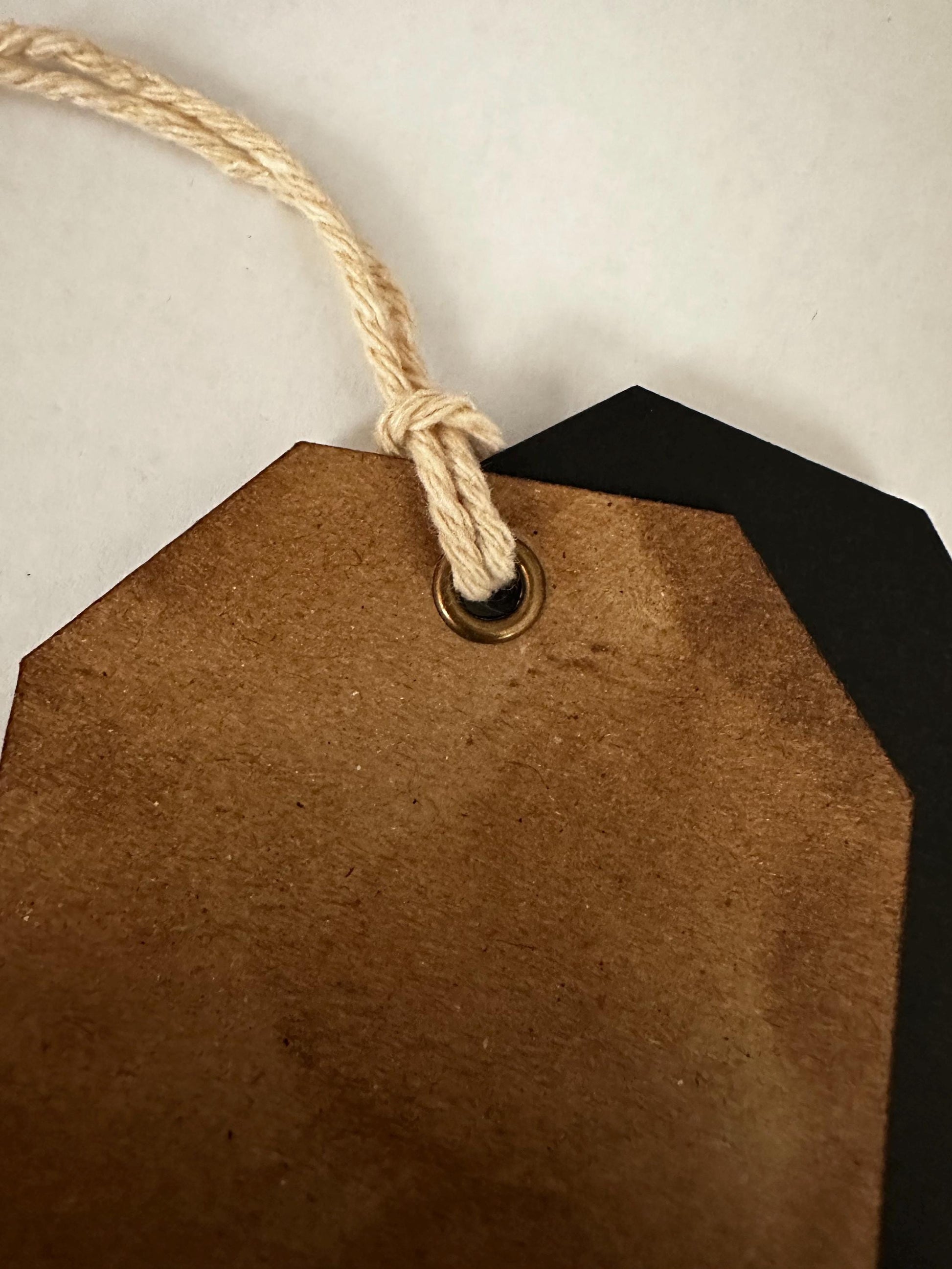 Die Cut from High quality card stock, complete with metal eyelet for secure fastening. The brown variation is made from recycled card stock and is treated to give that rustic / vintage look.