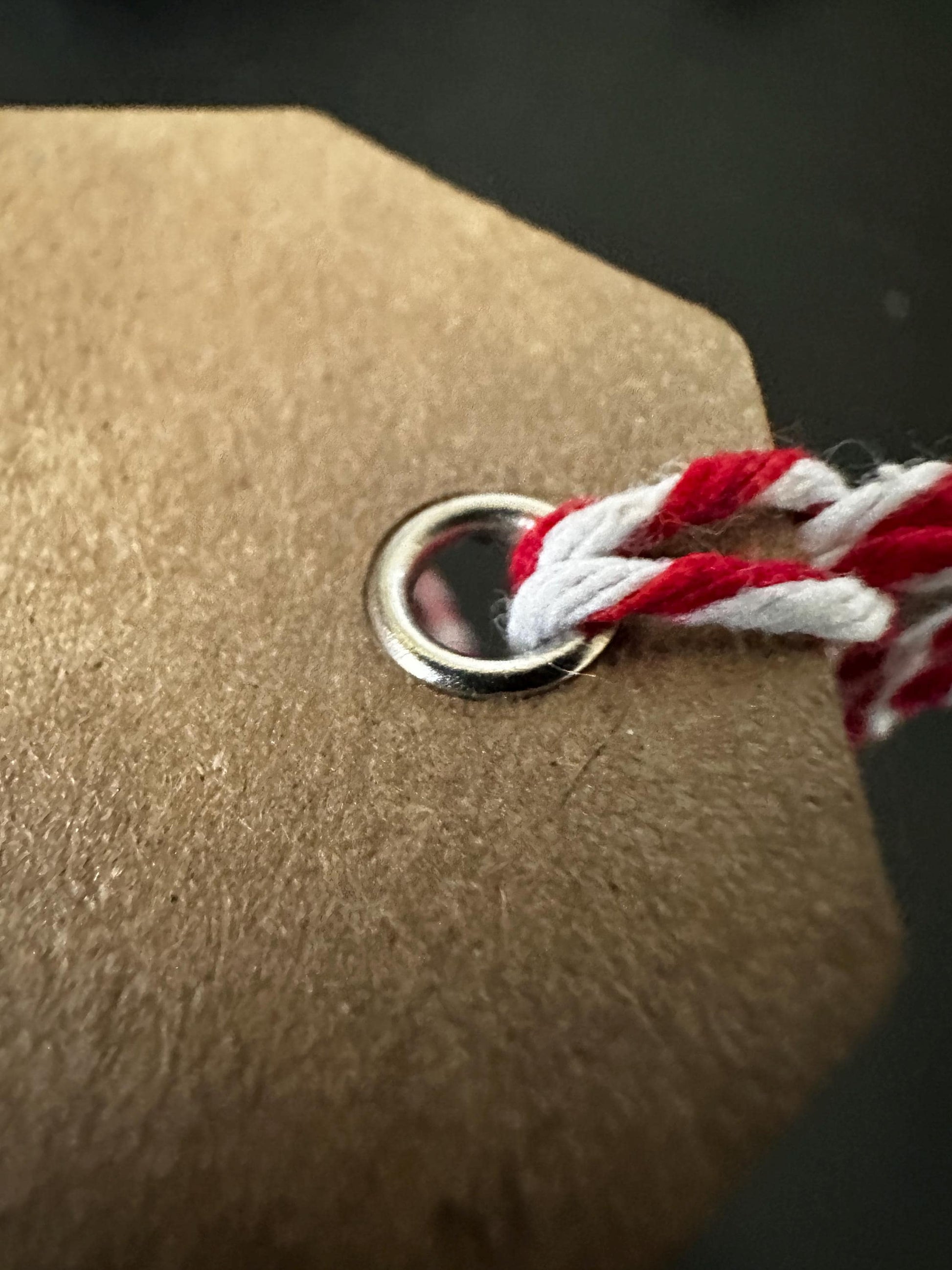 Die Cut from High quality card stock, complete with metal eyelet for secure fastening. The brown variation is made with recycled card stock and treated to give the rustic / vintage look.