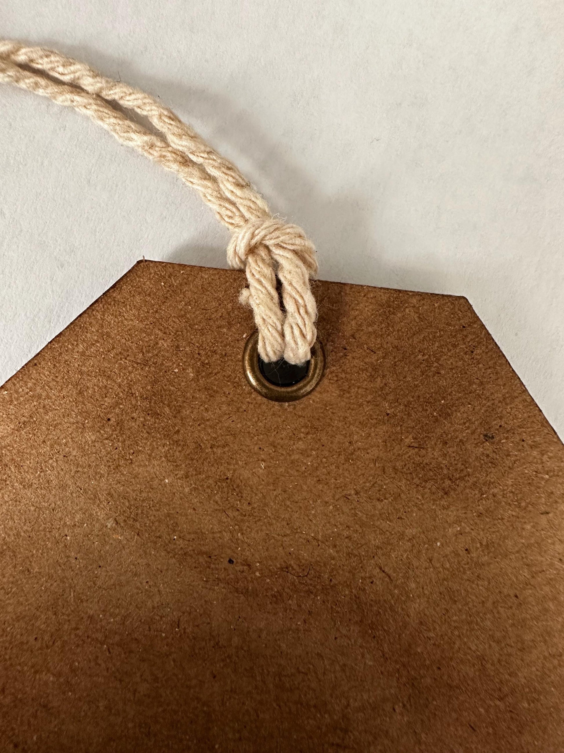 Die Cut from High quality card stock, complete with metal eyelet for secure fastening. The brown variation is made from recycled card stock and is treated to give that rustic / vintage look.