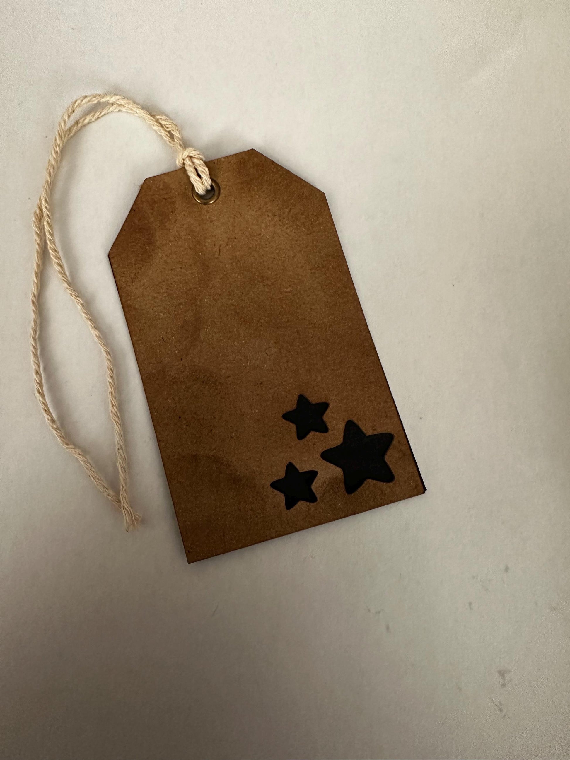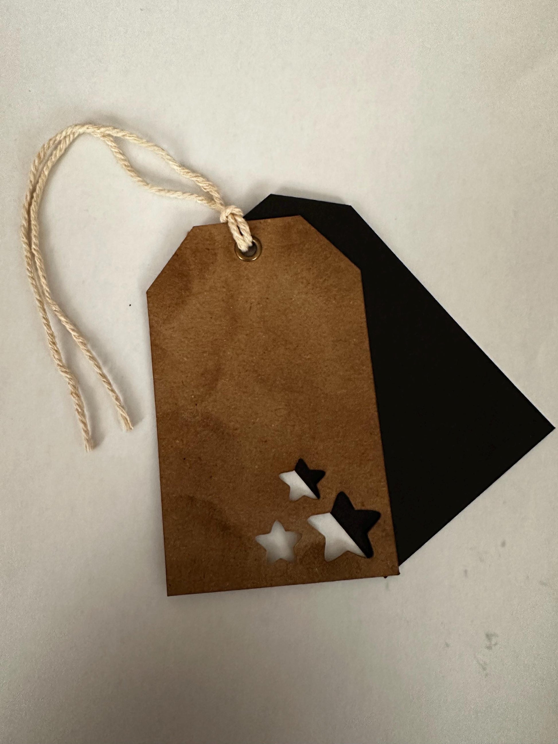 Die Cut from High quality card stock, complete with metal eyelet for secure fastening. The brown variation is made from recycled card stock and is treated to give that rustic / vintage look.